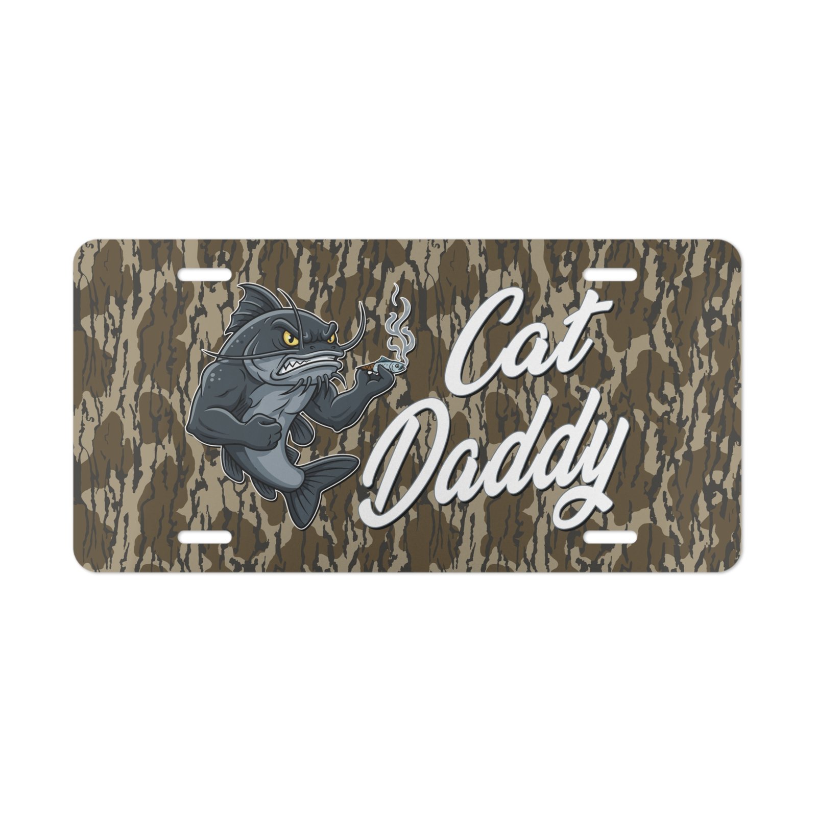 Enhance your vehicle’s front with a rugged catfish camo vanity plate that blends seamlessly with real hunter camouflage. This custom-designed plate fits standard front license plate mounts, offering a personalized touch for $25. Discover how it elevates your truck or car’s style while showcasing your passion for fishing.