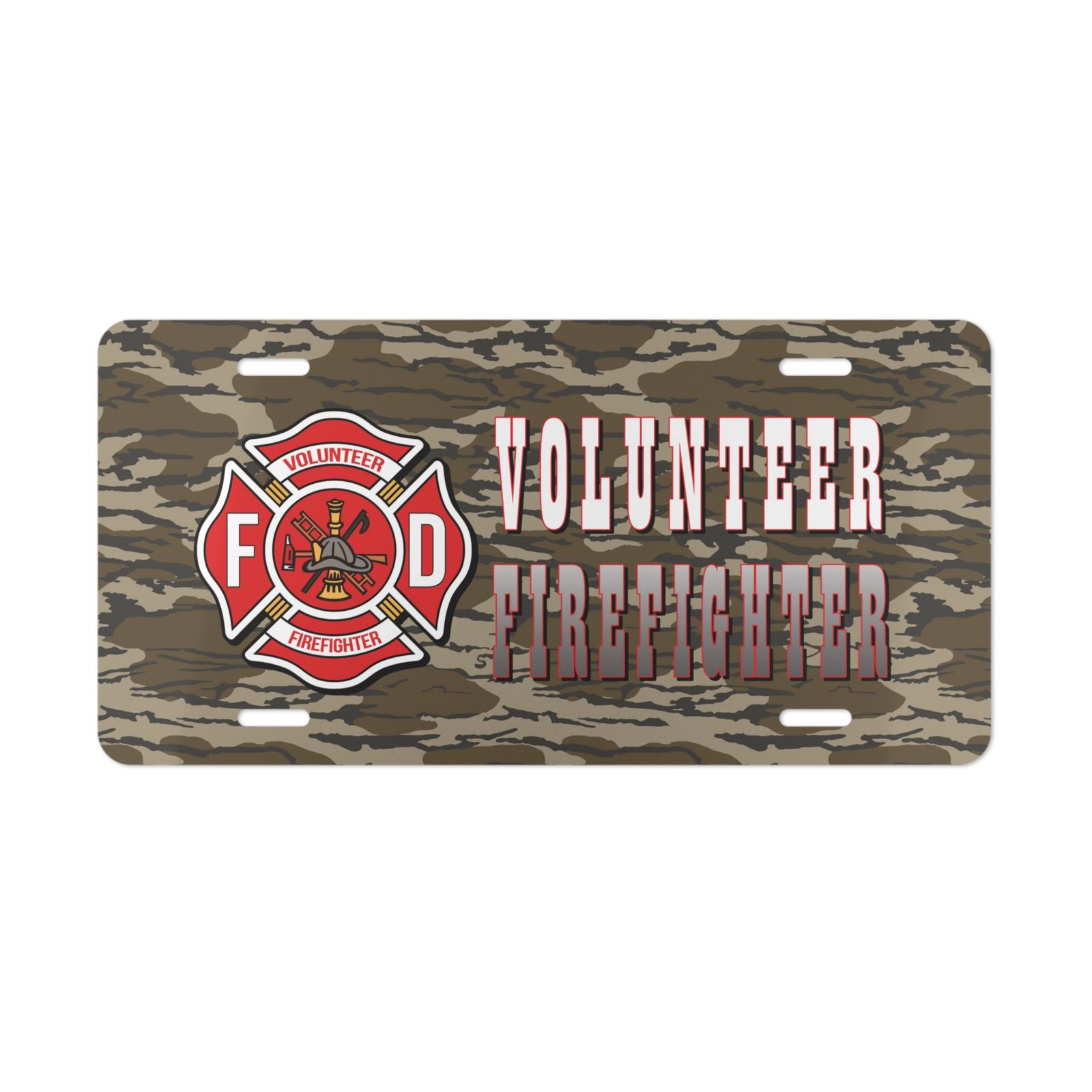 Show your support and pride with a custom camo vanity truck plate designed specifically for volunteer firefighters. Crafted with real hunter camouflage, this front license plate tag offers a unique blend of rugged style and personalized identity. Discover how this durable, eye-catching tag can elevate your vehicle’s presence.